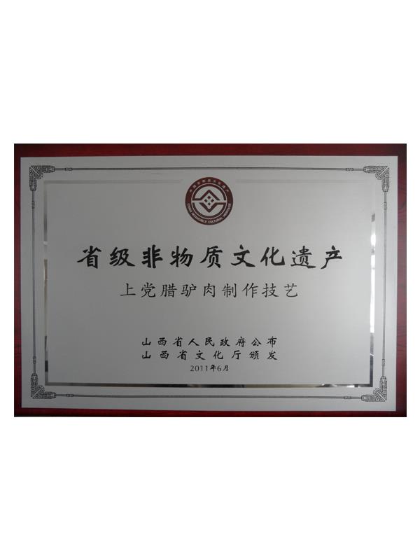《本草綱目》第五十卷記載有:“驢肉味甘、無毒、解心煩、止風(fēng)狂、能安心氣、補血益氣、治遠年勞損”的作用,尤其對失眠、健忘、眩暈、營養(yǎng)不良、貧血癥有獨特療效。上黨臘驢肉是山西長治市的漢族傳統(tǒng)名吃,其肉質(zhì)肥而不膩、瘦而不柴、香味四溢、回味無窮。早在明代,臘驢肉就已馳名于上黨和晉南地區(qū),產(chǎn)品遠銷北京、天津、南京等南北名城。臘驢肉與當(dāng)?shù)氐臎龇?、酥火燒被稱為潞安府(長治古稱潞安府)三寶。